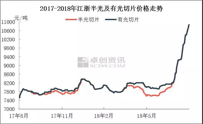 圖1 2017-2018年江浙半光及有光切片價格走勢