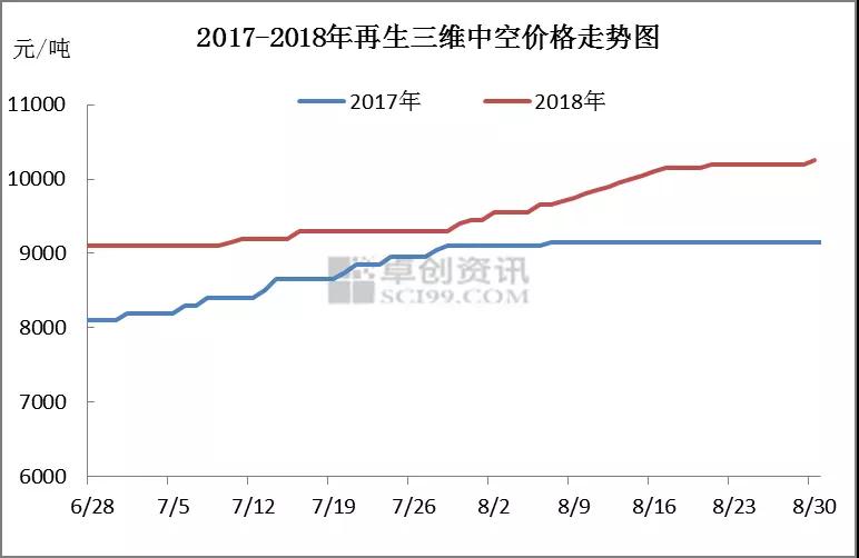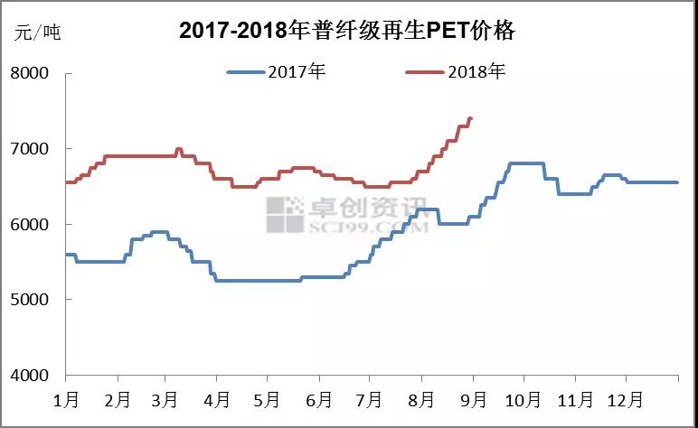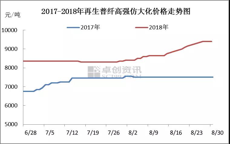 本周再生普纖主流市場行情繼續(xù)上漲,局部地區(qū)價格也有上調(diào)。截至周四江浙市場再生普纖高強仿大化含稅價格在9200-9600元/噸,較上周漲200元/噸。